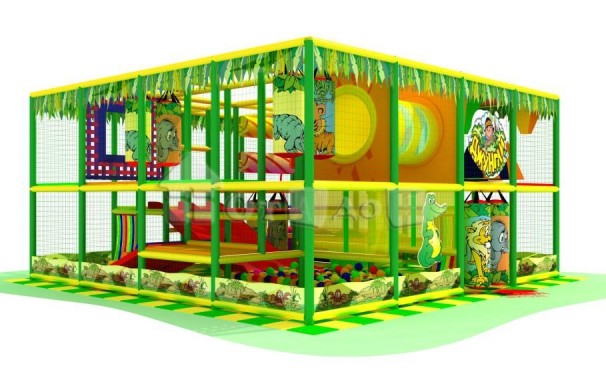 Одна из наиболее популярных моделей типовых лабиринтов под коммерческое использование. Площадь установки около 25м2, основа лабиринта - двускатная горка с бассейном с шариками, также в комплектации - пластиковая труба-переход, батут на мячах, спортивные лазалки , переходы, препятствия, мячи.