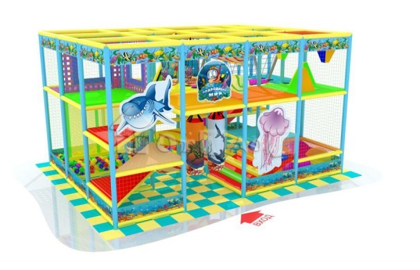 Модификация лабиринта "Колибри" на установку под более высокие потолки ( высотой от 3,1м). Насыщенный игровой лабиринт на небольшую площадь ( до 20м2), относительно высокие потолки ( от 3м), под коммерческое использование на любой возраст детей. В комплектации двускатная горка с бассейном, а также множество препятствий, переходной мостик, батут на мячах и т.п.