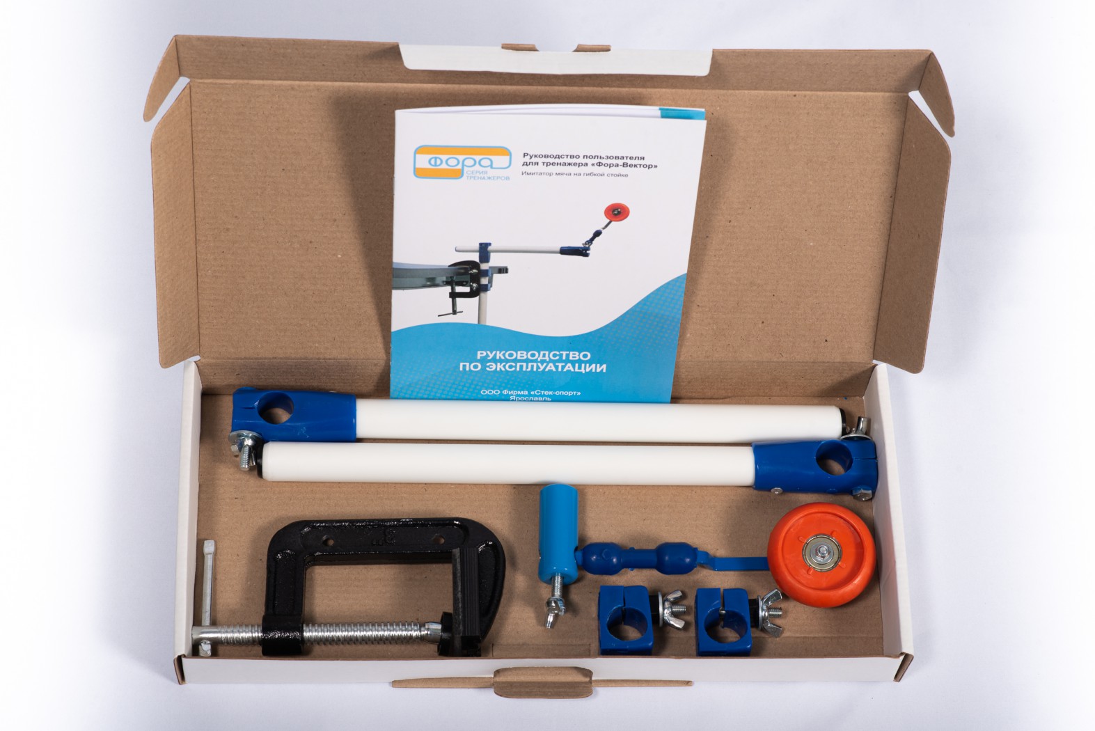 2. Будьте аккуратны при установке тренажера на стол, возможно повреждение поверхности стола при сильном закручивании струбцины.