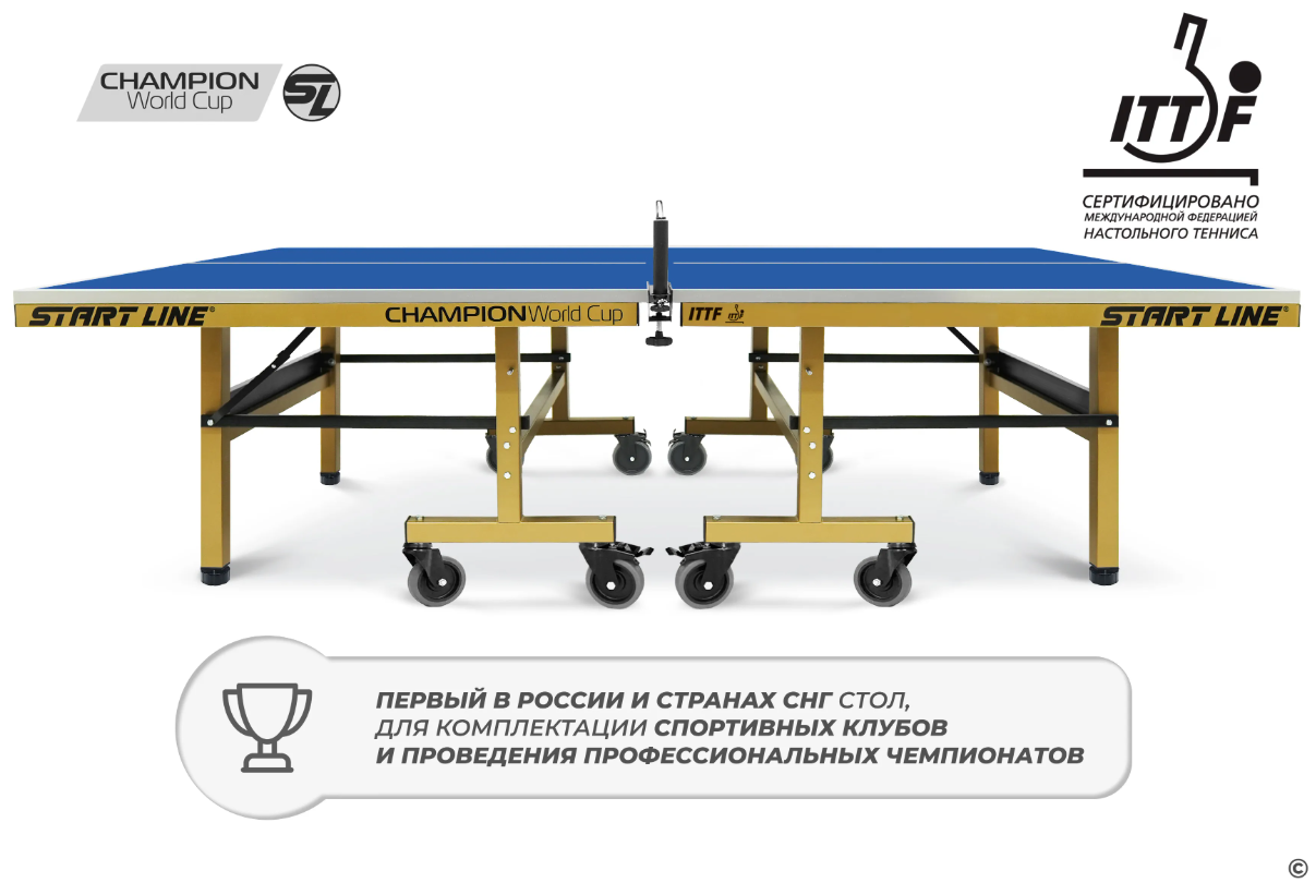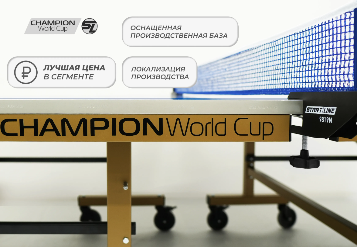 Champion World Cup — это первый в России и странах СНГ стол, спроектированный для комплектации спортивных клубов и проведения профессиональных чемпионатов. Рекомендации топ-спортсменов, учтенные при разработке, гарантируют эргономику модели и игровые характеристики, соответствующие самым строгим мировым стандартам.