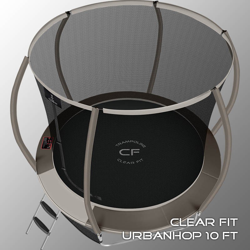 В 2026 году представлена обновленная линейка с улучшенной конструкцией каркаса. Усиление достигнуто за счет использования прочных Т-образных кронштейнов из металла толщиной 1.9 мм. Кроме того, в комплектацию добавлен карман для обуви. Каркасный батут с защитной сеткой Clear Fit серии UrbanHop — отличаются комфортом и надежностью. Надежная рама из качественных комплектующих, прочная защитная сеть снабжена прямым креплением к прыжковому полотну и дополнительной защитой входа, наверху каркасное жесткое крепление, сеть не провисает и не слетает во время тренировок. Увлекательный, полезный и безопасный тренажер для всей семьи. Батуты серии UrbanHop 10Ft, 12Ft, 14Ft и 16Ft поставляются в оптимальной для комфорта и безопасности комплектации: батут, верхняя защитная сеть, защитный мат, лестница и карман для обуви. Благодаря размеру батута в 10 футов и диаметру прыжковой поверхности 2.62 м он идеально подходит для дачного участка, размеры полотна позволяют комфортно тренироваться взрослым и развлекаться детям любого возраста. Верхняя защитная сеть оберегает от падений, усиленная молния и дополнительная защита входа уберегут малышей от случайного входа или падения. Надежный каркас из оцинкованной стали, качественные комплектующие и погодостойкие гальванизированные метизы рамы делают батут безопасным, устойчивым, надежным, гарантируют полную защиту от коррозии и долгий срок службы. Максимальный вес пользователя батута UrbanHop 10Ft — до 170 кг.